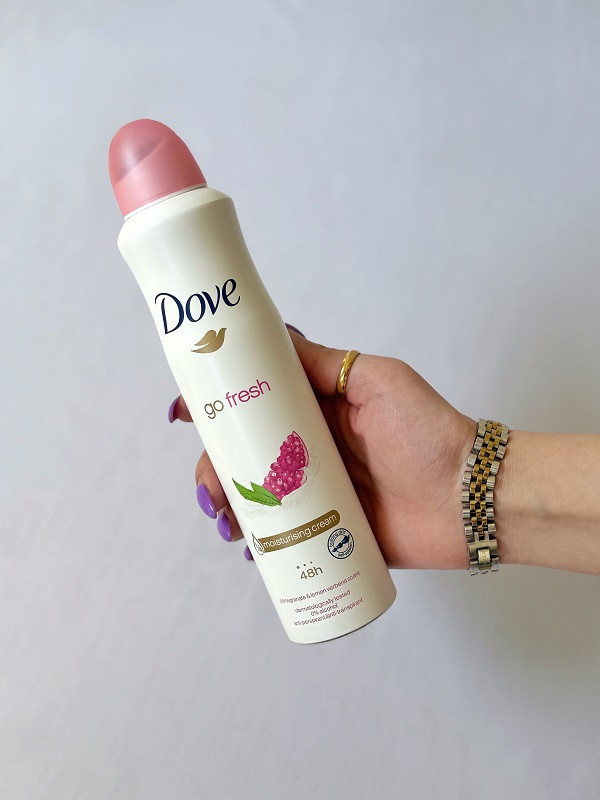 اسپری ضد تعریق زنانه داو مدل گو فرش با رایحه انار و به لیمو Dove spray go fresh Pomegranate & Lemon رایحه ای طراوت بخش دارد تا برای مدت طولانی تری احساس شادابی داشته باشید. این دئودورانت زنانه به مدت 48 ساعت از شما در برابر تعریق و بوی بدن محافظت میکند و رایحهای لطیف برای حفظ بوی عالی در تمام طول روز باقی میگذارد.